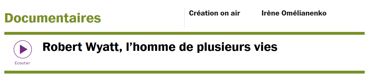 Dans cet album comme dans ceux qui suivront, Robert Wyatt explore ses émotions avec une sincérité bouleversante. La musique et la voix de cet homme inquiet ne ressemblent à aucune autre. Avec lui, l’humour le dispute à la tragédie. Dépressif joyeux et ancien membre du parti communiste, il est l’éternel défenseur des causes perdues. Après une dizaine d’albums solo et des collaborations avec entre autres Bjork, Brian Eno, Elvis Costello, il a le jour de ses 70 ans, décidé d’arrêter la musique. Avec Pierre Bornard, ingénieur du son nous sommes allés le voir à Louth, petite ville perdue du nord-est de l’Angleterrre, où il vit avec Alfreda Benge, sa femme et muse.