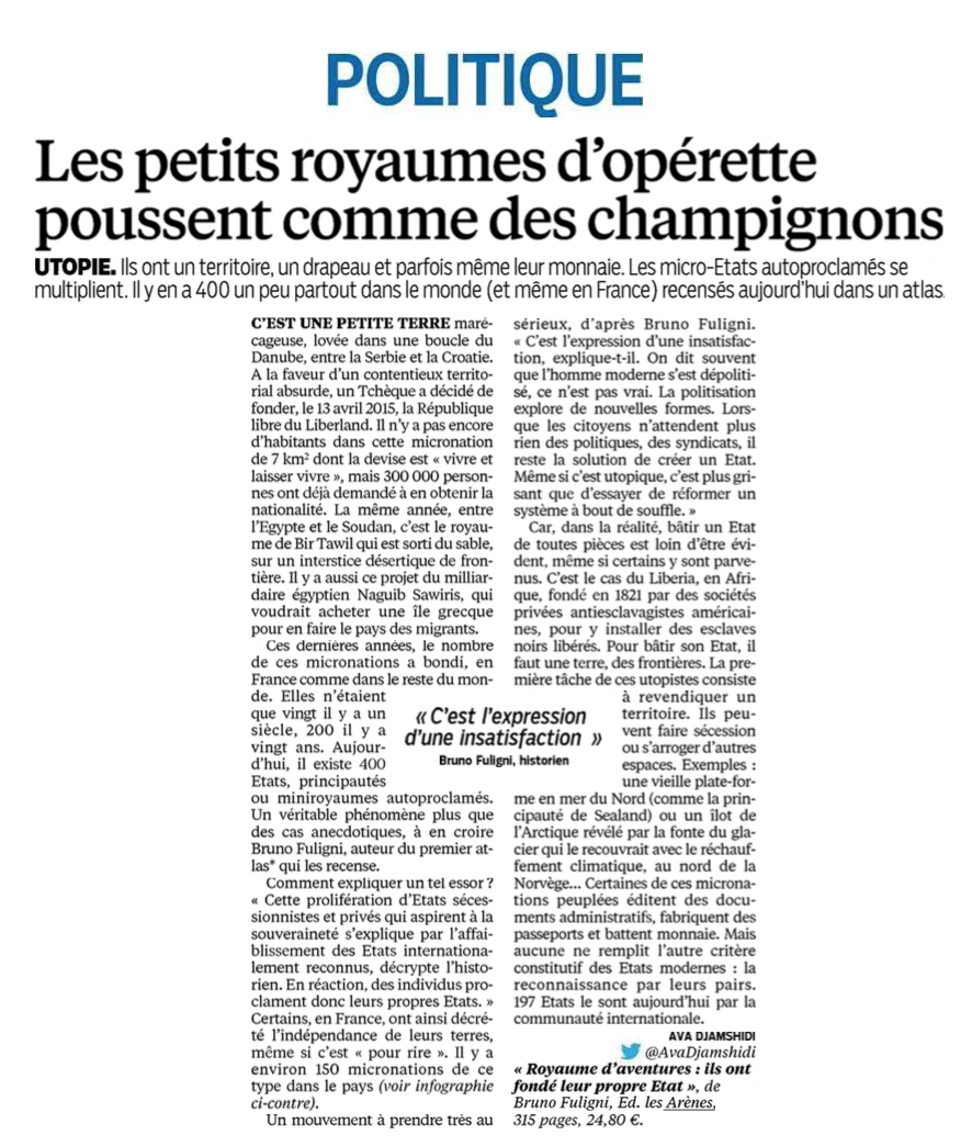 Bruno Fuligni, l’historien spécialiste des tout petits Etats sort ces jours-ci « Royaumes d’aventure », le premier atlas des micronations.