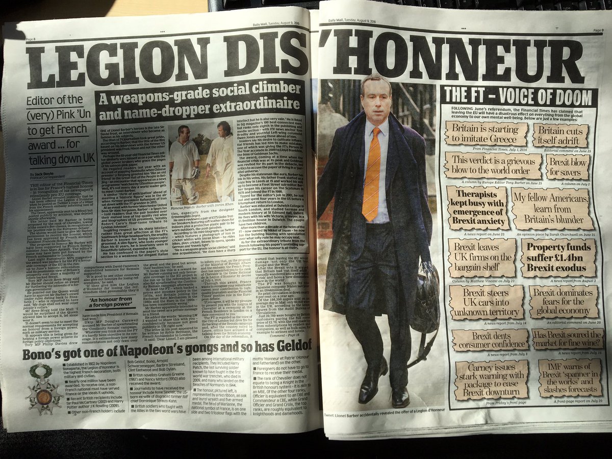 Lionel Barber a révélé hier qu’il recevrait la Légion d’Honneur via un tweet montrant une copie de la lettre provenant de l’ambassade de France, lui notifiant la date de sa remise.