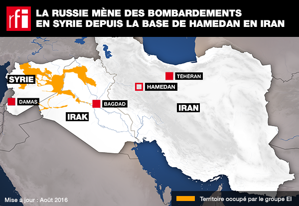 « Le 16 août, des bombardiers à long rayon d’action Тu-22М3 et des bombardiers tactiques Su-34, ont décollé, armés, de l’aérodrome Hamedan en Iran. Ils ont frappé des cibles des groupes terroristes État islamique [EI ou Daesh] et Front al-Nosra [ou Jabhat Fatah al-Sham] dans les régions d’Alep, Deir Ezzor et Idleb », a en effet annoncé le ministère russe de la Défense.