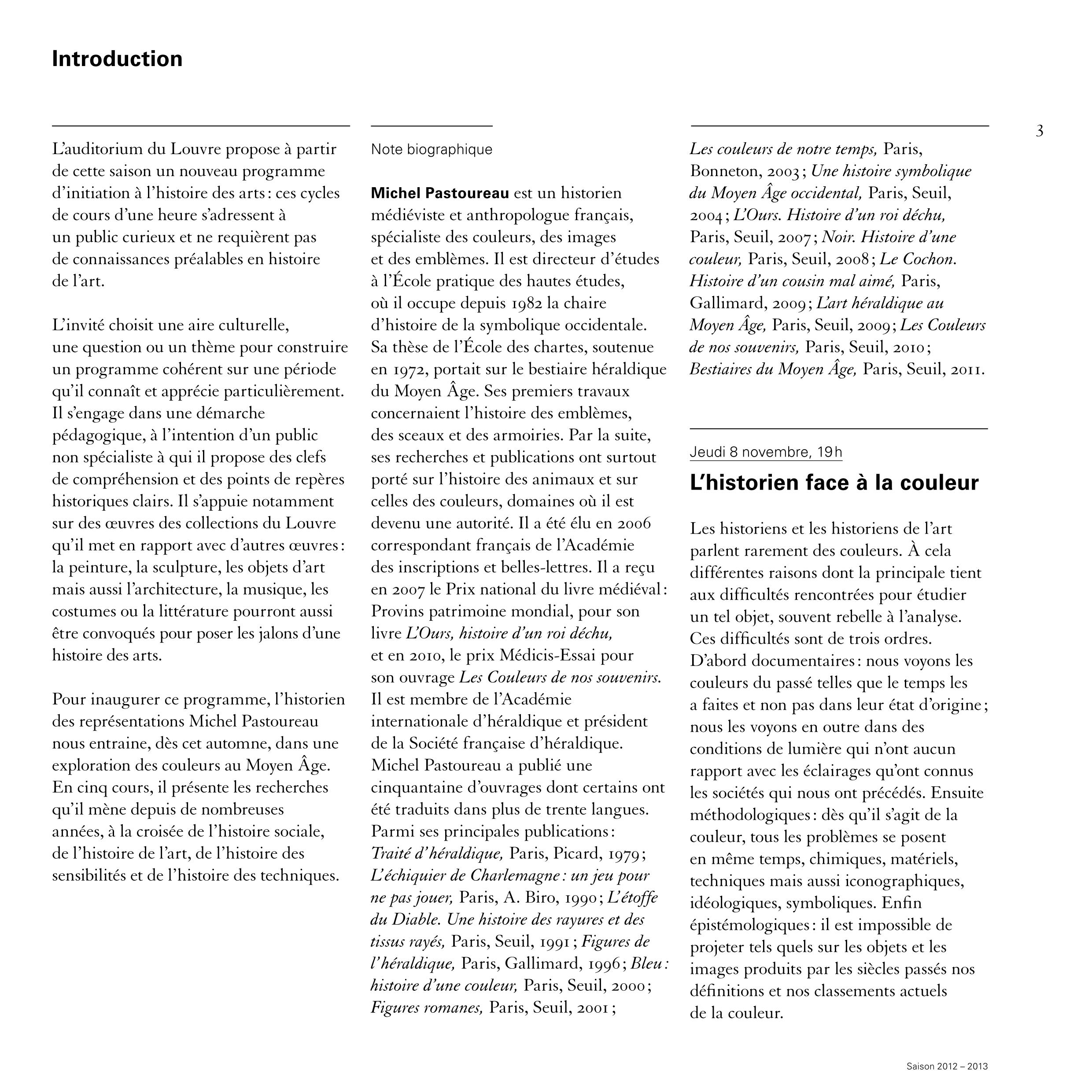 L’historien des représentations Michel Pastoureau nous entraîne dans une exploration des couleurs au Moyen Âge. En cinq cours, il présente les recherches qu’il mène depuis de nombreuses années, à la croisée de l’histoire sociale, de l’histoire de l’art, de l’histoire des sensibilités et de l’histoire des techniques.