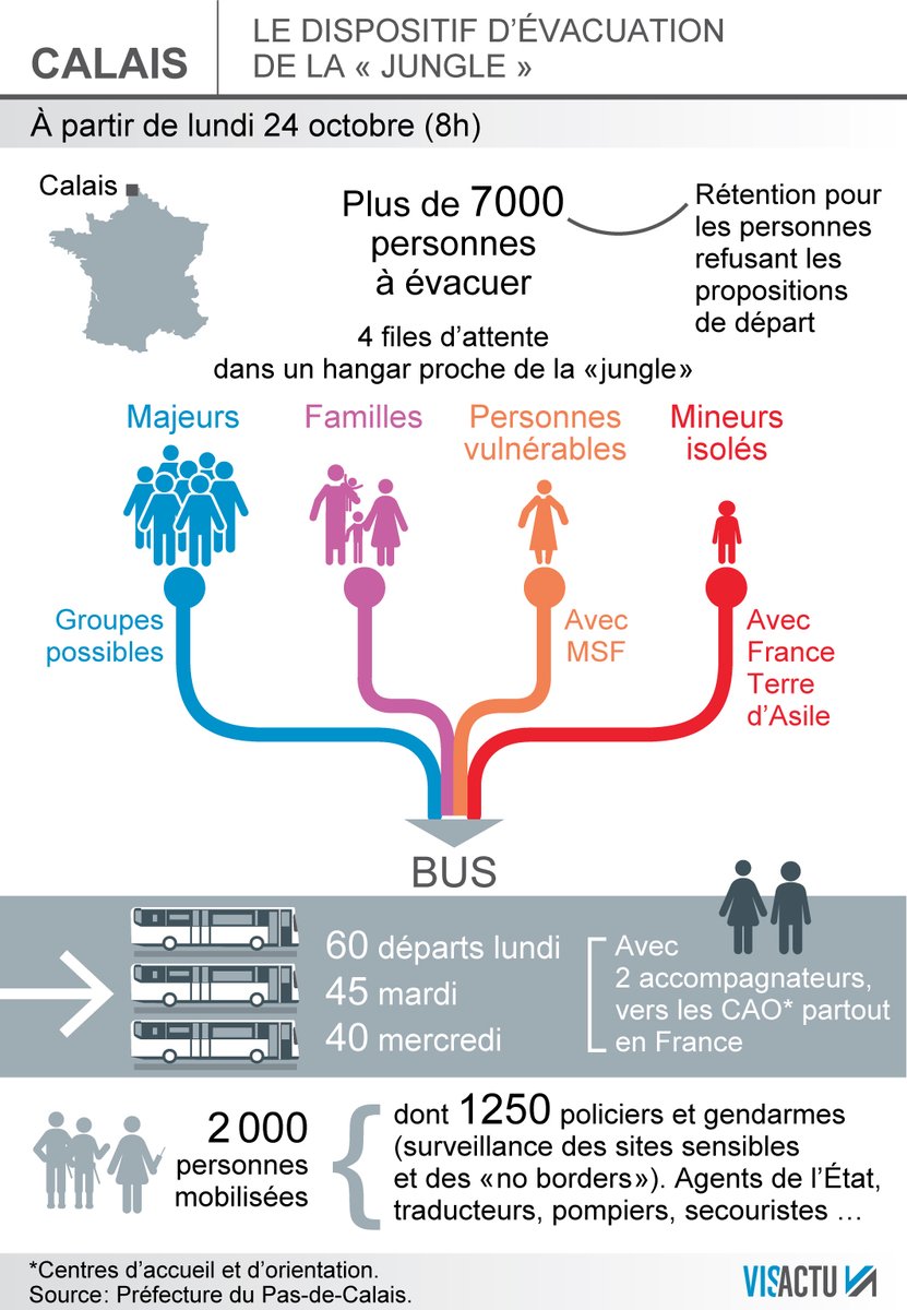 Le tribunal administratif de Lille a rejeté mardi la demande d’interdiction du démantèlement du camp de migrants de la «jungle», à Calais, formulée par onze associations en référé-liberté.Le démantèlement est «une question de jours», a affirmé Bernard Cazeneuve. Dans son ordonnance, que l’AFP s’est procurée, le tribunal, saisi jeudi dernier en référé-liberté, estime ainsi que «le principe même du démantèlement du site de la Lande (nom officiel de la «Jungle, ndlr) de Calais ne méconnaît pas le principe de prohibition des traitements inhumains et dégradants».D’après la justice, le démantèlement vise précisément à «faire cesser» de tels traitements auxquels sont soumis les migrants qui vivent dans le camp «dans des conditions de précarité et d’insécurité dénoncées par tous».Quatre-vingts migrants ont quitté ce mardi la «Jungle» de Calais pour rejoindre le campus universitaire des facultés de Lille à Villeneuve-d’Ascq, a affirmé le ministre de l’Intérieur, Bernard Cazeneuve, dans un communiqué
