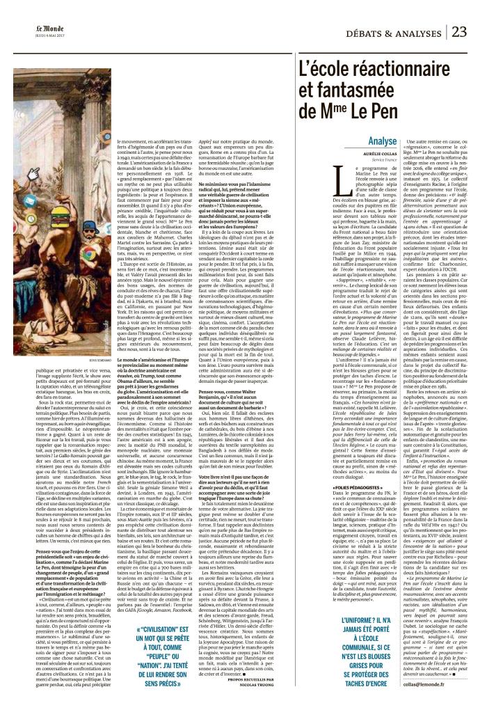 Pour l’auteur, l’ère américaine est bien là : « l’homo œconomicus » avant l’ »homo politicus », la politique s’est effacée peu à peu pour laisser place à l’économie. Les civilisations naissent, passent, se transforment, et Régis Debray nous montre ce changement notamment à travers la figure d’Emmanuel Macron : pur produit de l’américanité. C’est la prédominance de l’image sur l’idée, l’optimisme moderne et « successful », qui sont à l’origine du candidat vainqueur, selon l’auteur.
