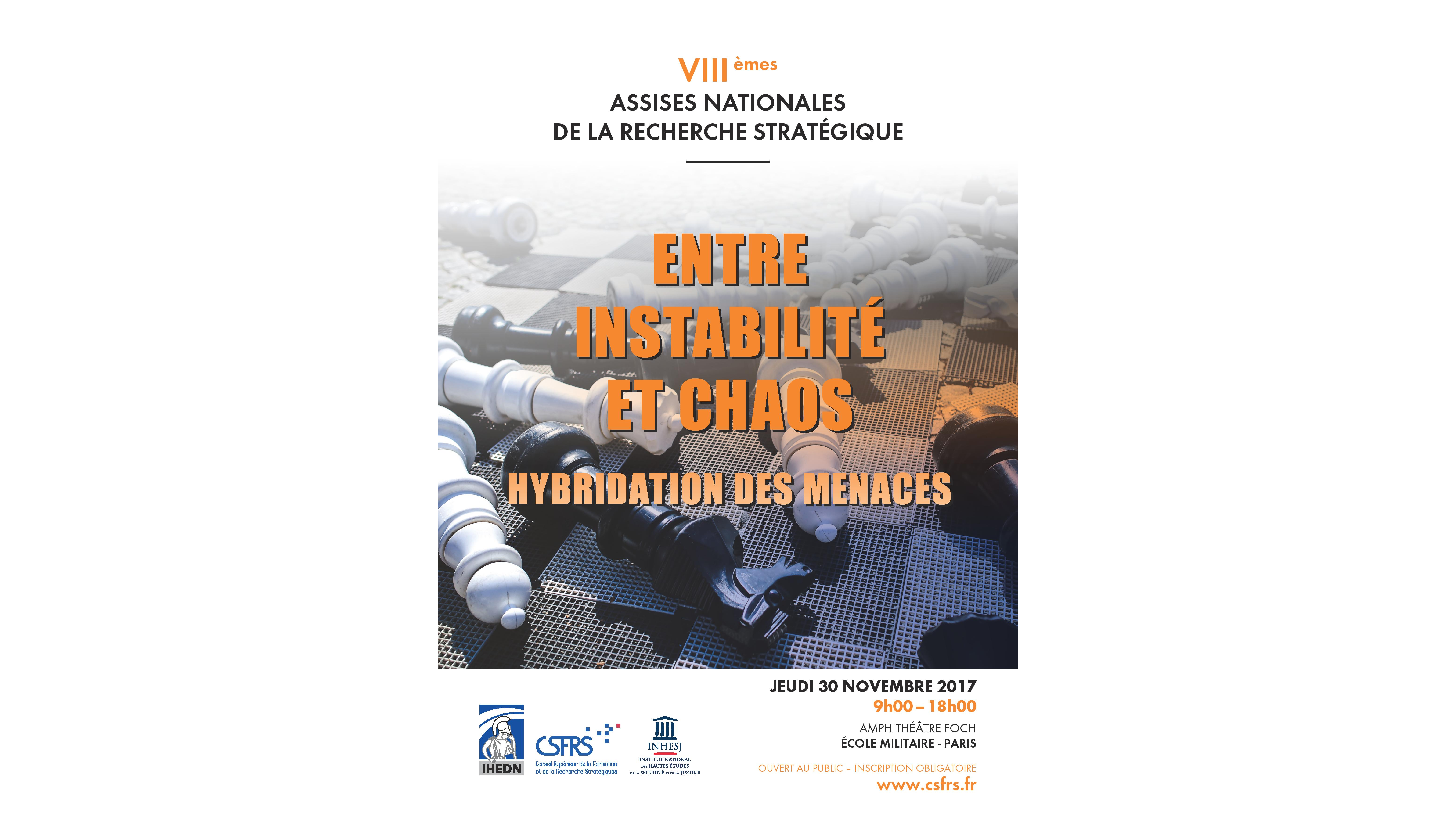 « Entre instabilité et chaos : hybridation des menaces » : c’est le titre de l’édition 2017 des Assises Nationales de la Recherche Stratégique, organisées par le Conseil Supérieur de la Formation et de la Recherche Stratégique (CSFRS). C’était le lundi 30 novembre 2017 à l’École Militaire, dans le 7ème arrondissement de Paris.