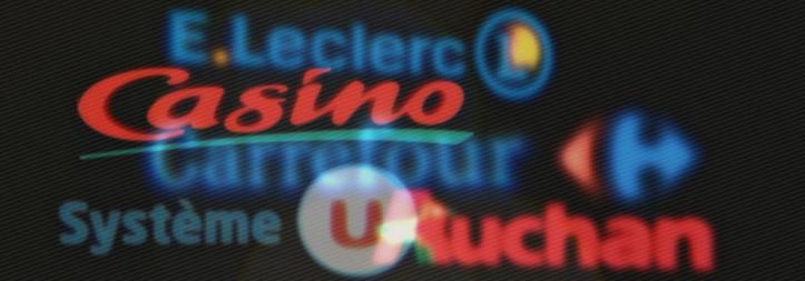 En France, une poignée d’enseignes de la grande distribution se livrent bataille : les groupes Carrefour, Auchan et Casino, ainsi que les coopératives Leclerc, Intermarché et Système U.