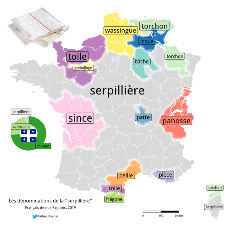 Quoi de plus déroutant pour un Alsacien en vacances à Toulouse que de devoir demander une chocolatine à la boulangerie pour obtenir ce que lui appelle un petit pain et qu’ailleurs, on nomme le plus souvent pain au chocolat ? Et s’il existe deux mots pour désigner une brioche chocolatée… sachez qu’il en y’en a dix pour désigner une serpillière !