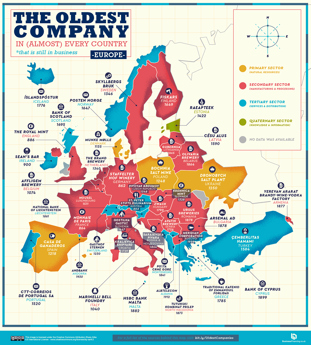 The Oldest Company in Almost Every Country (That is Still in Business)