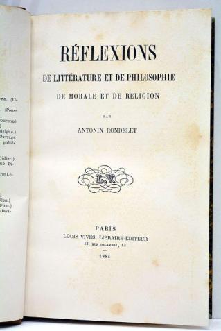 Antonin Rondelet (1823-1893) – Réflexions de littérature, de philosophie, de morale et de religion (1881)