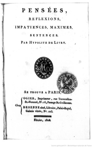 Hypolite de Livry (1765-1834) – Pensées, réflexions, impatiences, maximes, sentences