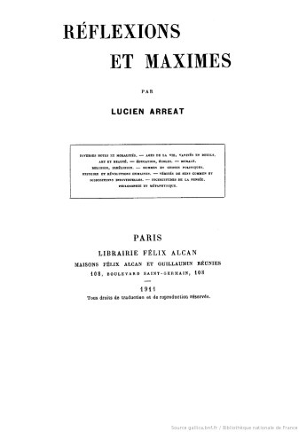 Lucien Arréat (1841-1922) – Réflexions et maximes